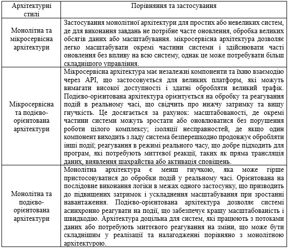 Порівняльний аналіз застосування архітектурних стилів