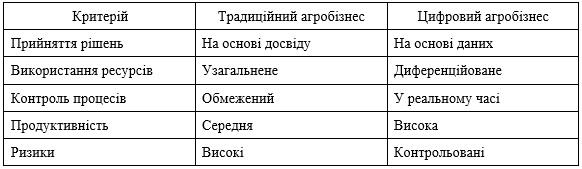 Порівняльний аналіз традиційного та цифрового агробізнесу